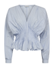 CMPOPLIN-BLOUSE ist eine Bluse aus hochwertigem Material mit tiefem V-Ausschnitt, langen Ärmeln mit Manschetten und Falten, die die Taille betonen und einen coolen Kontrast zum voluminösen Oberteil bilden.