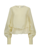 CMTILLY-BLOUSE ist eine extravagante Bluse aus hochwertigem Material mit großen Rüschen sowie langen Ärmeln mit auffälligem Ballon-Effekt und hohem Bündchen.