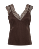 CMMARTA-TOP ist ein feminines Camisole-Top mit V-Ausschnitt aus einer gewebten Cupro–Viskose-Mischung. Die leicht figurbetonte Silhouette ist mit formgebenden Cups gearbeitet, die die Brust elegant betonen. Zarte Spitzenbesätze entlang Ausschnitt, Schultern und Armausschnitten setzen einen raffinierten Kontrast, während ein unsichtbarer Reißverschluss in der Seitennaht für ein glattes Finish sorgt.