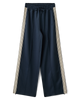 CMADA-SWEATPANTS ist eine High-Waist-Trackpant mit versteckten Reißverschlüssen an den weiten Beinen, seitlichen Taschen, elastischem Bund mit Kordelzug, gesticktem Logodetail und Bügelfalten vorne für einen schicken Knitter-Look.
