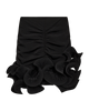 CMELLIE-SKIRT ist ein kurzer Rock in exklusiver Qualität mit enger Passform, verdecktem Reißverschluss an der Seite, Raffungen vorne und hinten sowie großen, plissierten Volants am Saum, die dem Rock einen raffinierten, asymmetrischen Look verleihen.