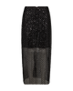 CMDECO-ROCK ist ein langer Rock aus hochwertigem Mesh-Material mit durchgehenden Pailletten und kleinen Perlen, einem kurzen Unterrock sowie einem Gehschlitz hinten und Reißverschluss.