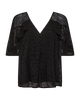 CMEA-BLOUSE ist eine Bluse aus wunderschöner Spitzenqualität mit Futter im Körperbereich und einem transparenten Effekt über den Schultern. Die Bluse hat außerdem einen V-Ausschnitt vorne und hinten sowie Rüschendetails, die einen zarten kleinen Ärmel verleihen.