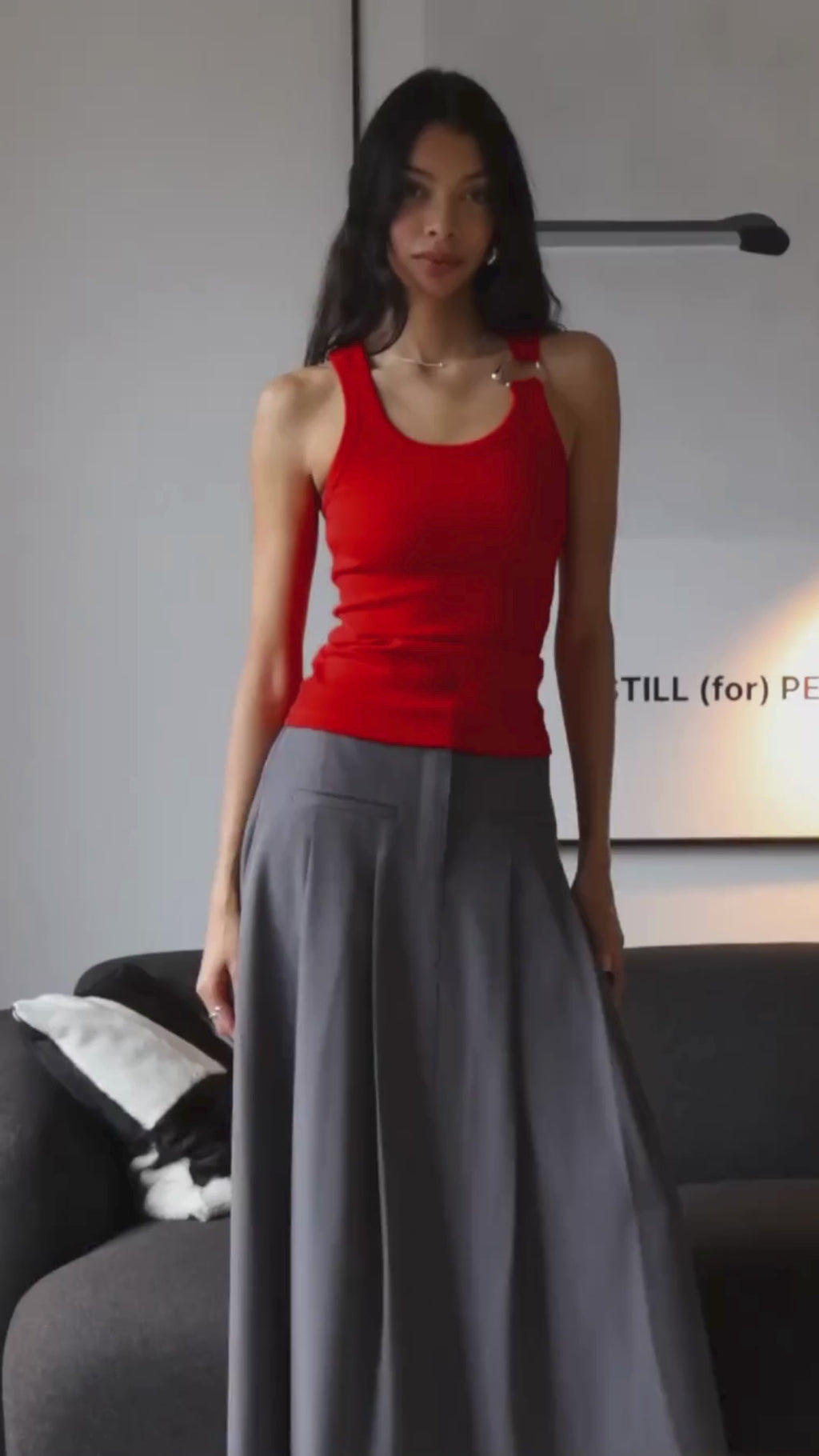 CMSIV-TOP ist ein Tanktop aus feiner, gerippter Bio-Baumwolljersey mit Stretch. Die schmale, körpernahe Silhouette wird durch eine asymmetrisch gesetzte Metall-Schließe in organischer Tropfenform akzentuiert. Klare Linien und breite Träger unterstreichen den modernen Ausdruck.